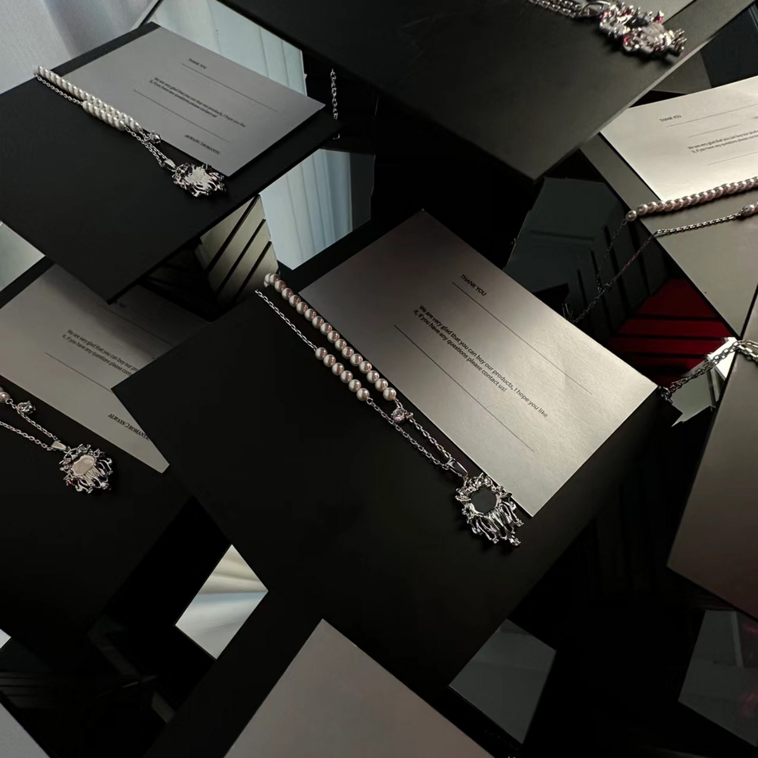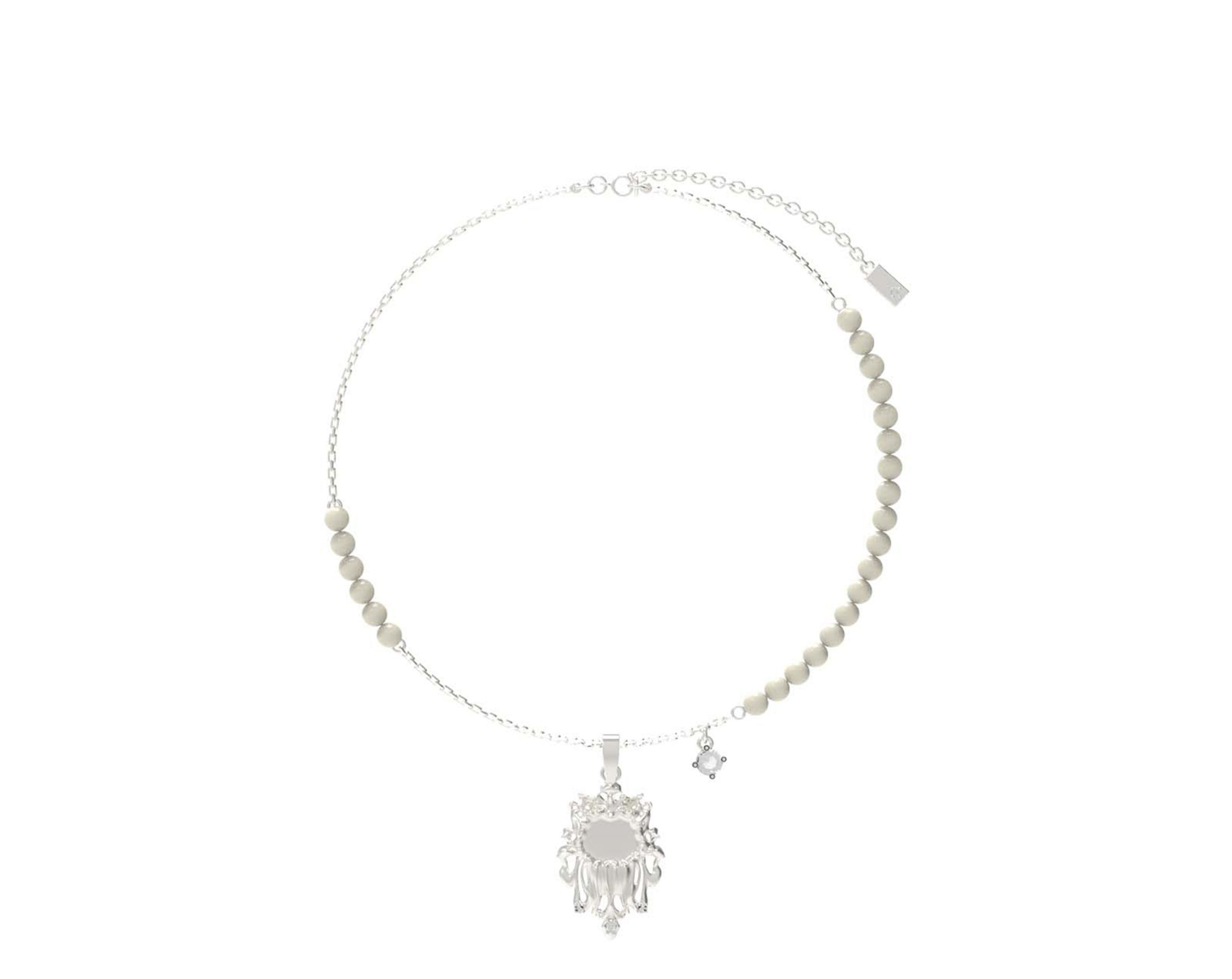 This modern necklace design contains environmentally conscious alternatives to traditional gemstones to make it good for mother earth and friendlier to your wallet. The pearls are made from recyclable material instead of harvesting oysters from the ocean to collect their pearls or use on unethical mining methods to unearth natural diamonds.